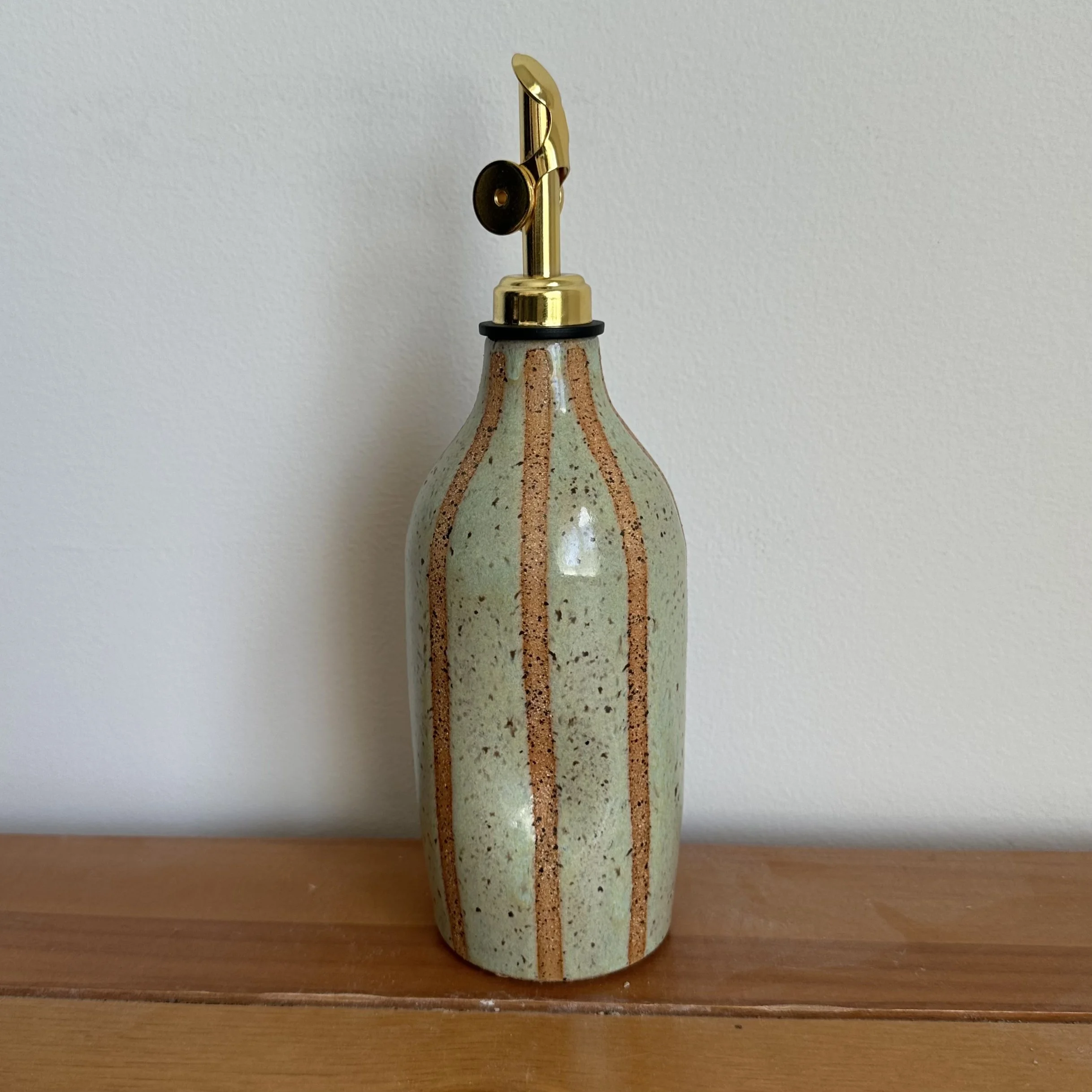 Shop › Light Green Striped Olive Oil Bottle Image 1 of 1 Light Green Striped Olive Oil Bottle $35.00 Add To Cart Added!